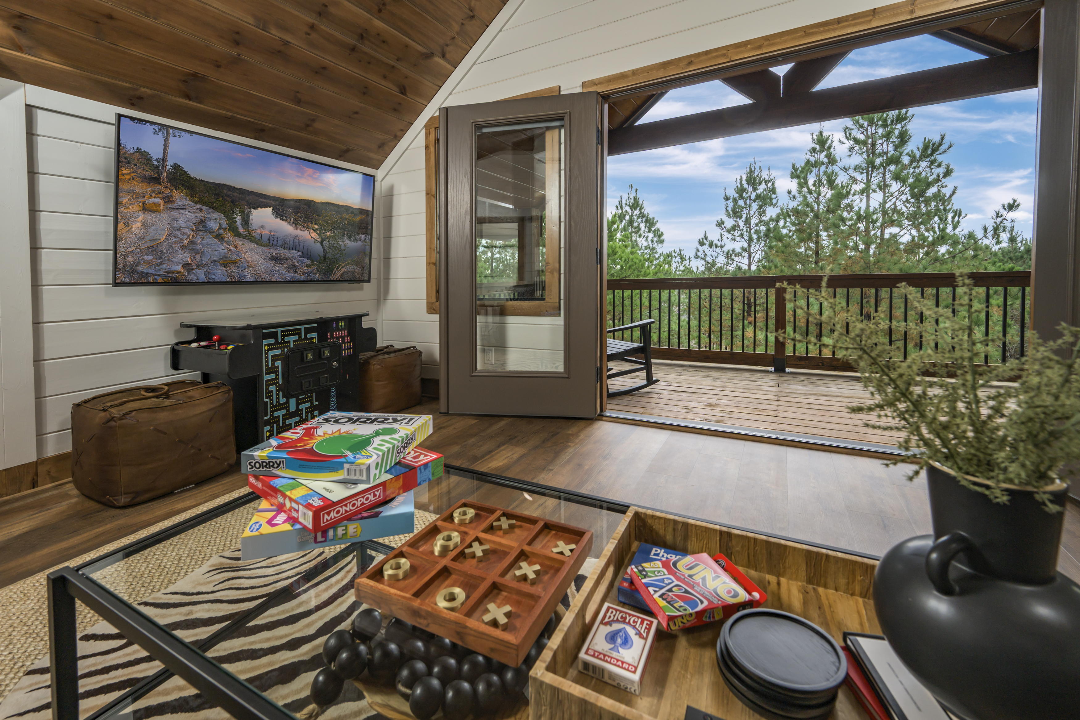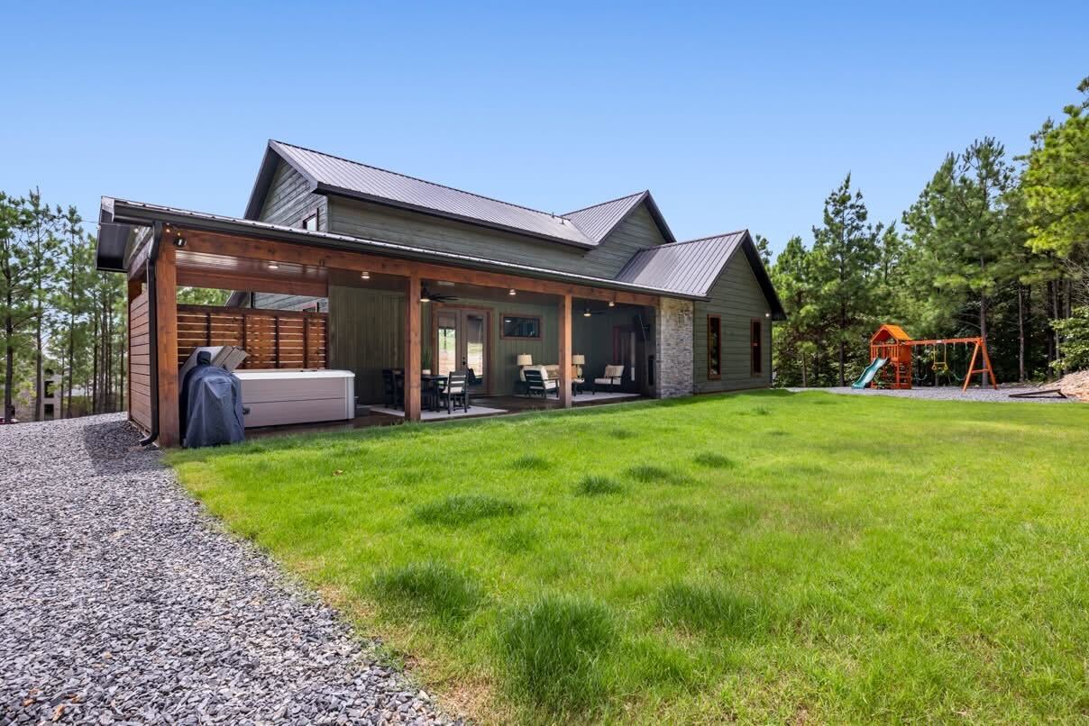 Tucked into a quiet cul-de-sac in Hochatown, this modern, pet-friendly cabin was designed for families, friends, and anyone craving peace, comfort, and a little bit of play. With a fully fenced grassy yard, two King suites, a fun-filled game loft, and a layout perfect for groups, it’s the kind of place where memories are made — and time slows down.