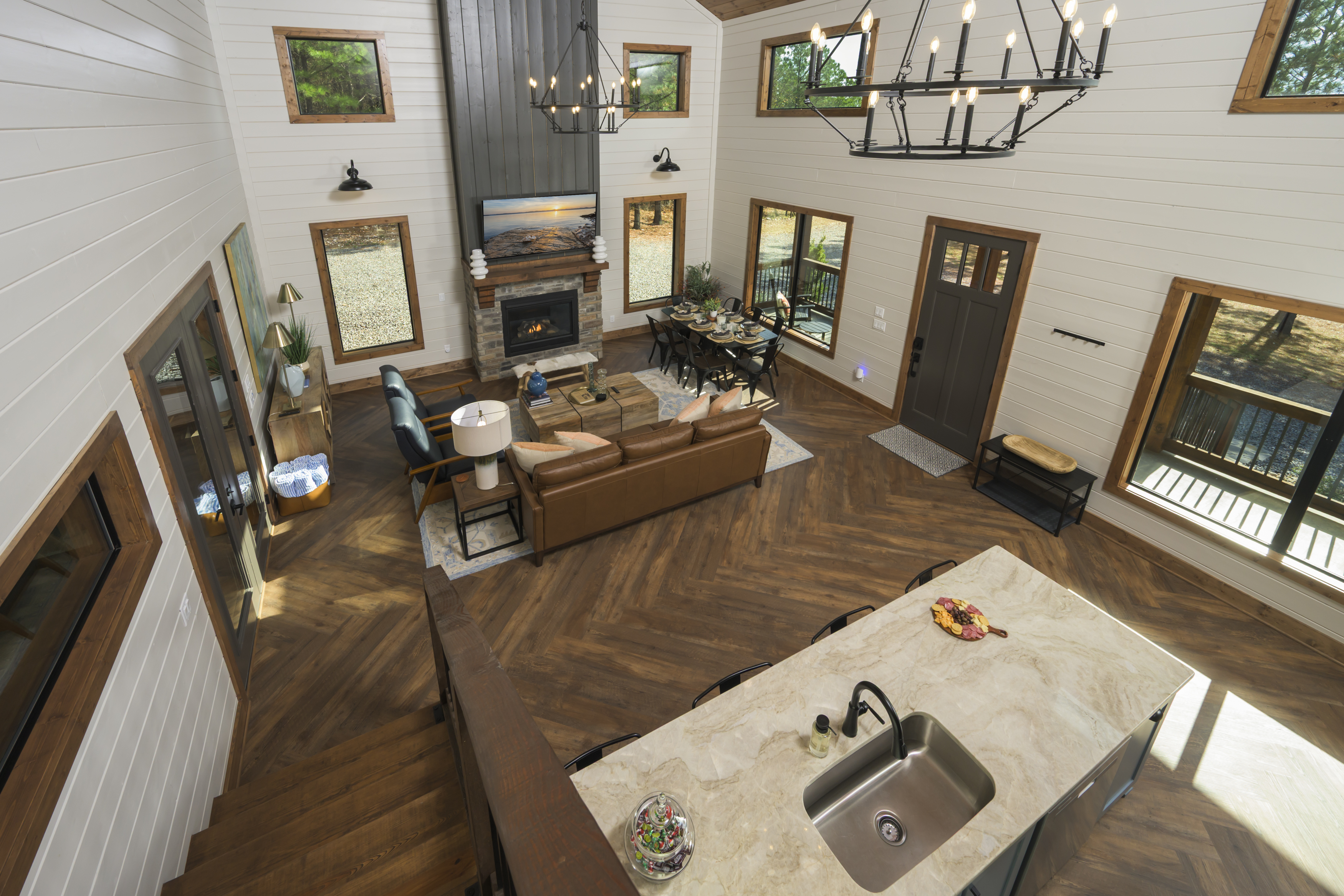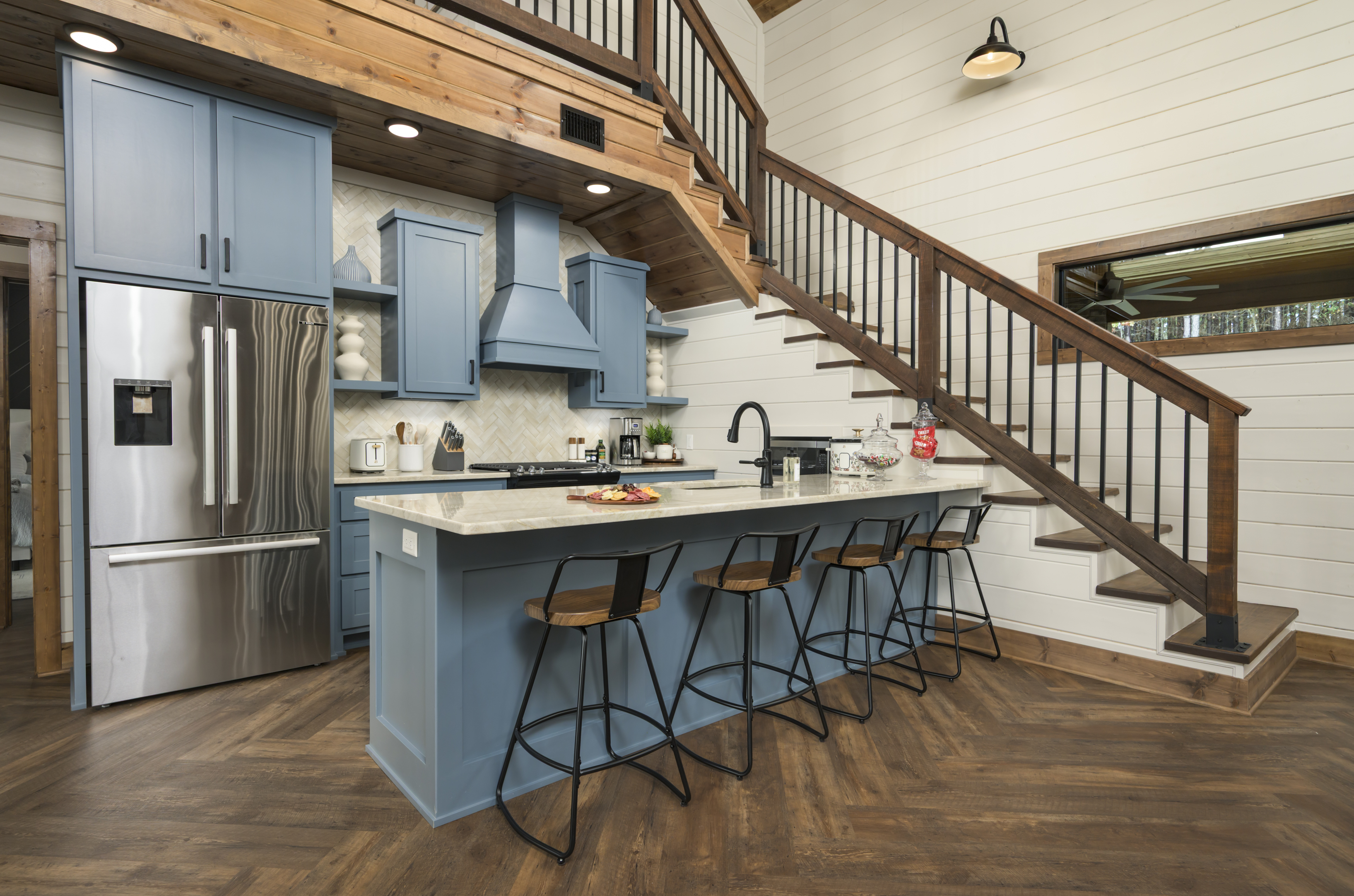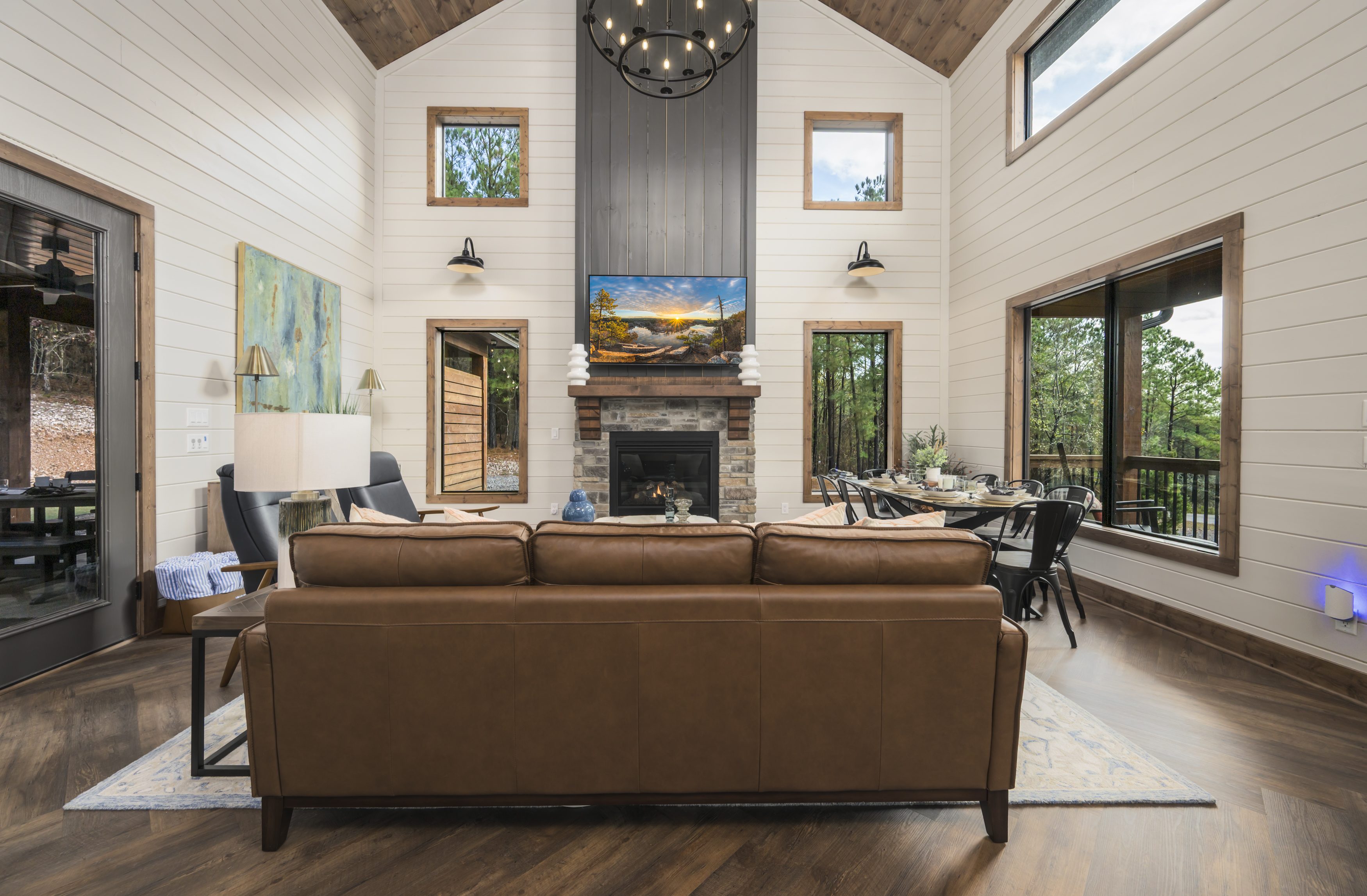 Set in the Ouachita National Forest, Blue Cedar is a private two-story cabin that feels tucked away — yet it’s just minutes from the best of Broken Bow and Hochatown. Designed with relaxation and connection in mind, the cabin blends thoughtful interiors with outdoor living spaces your whole group will love.