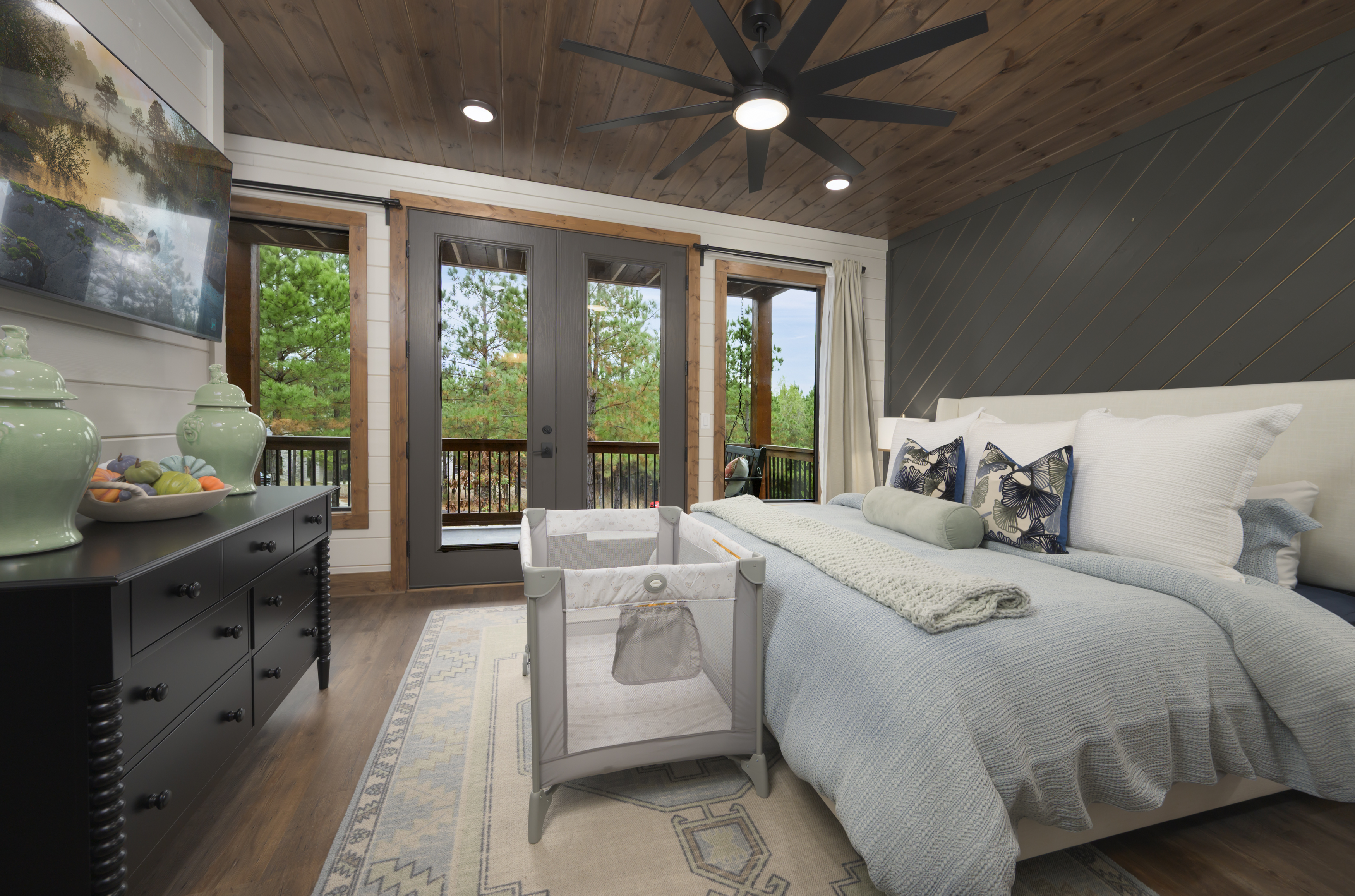 • King bed with forest views