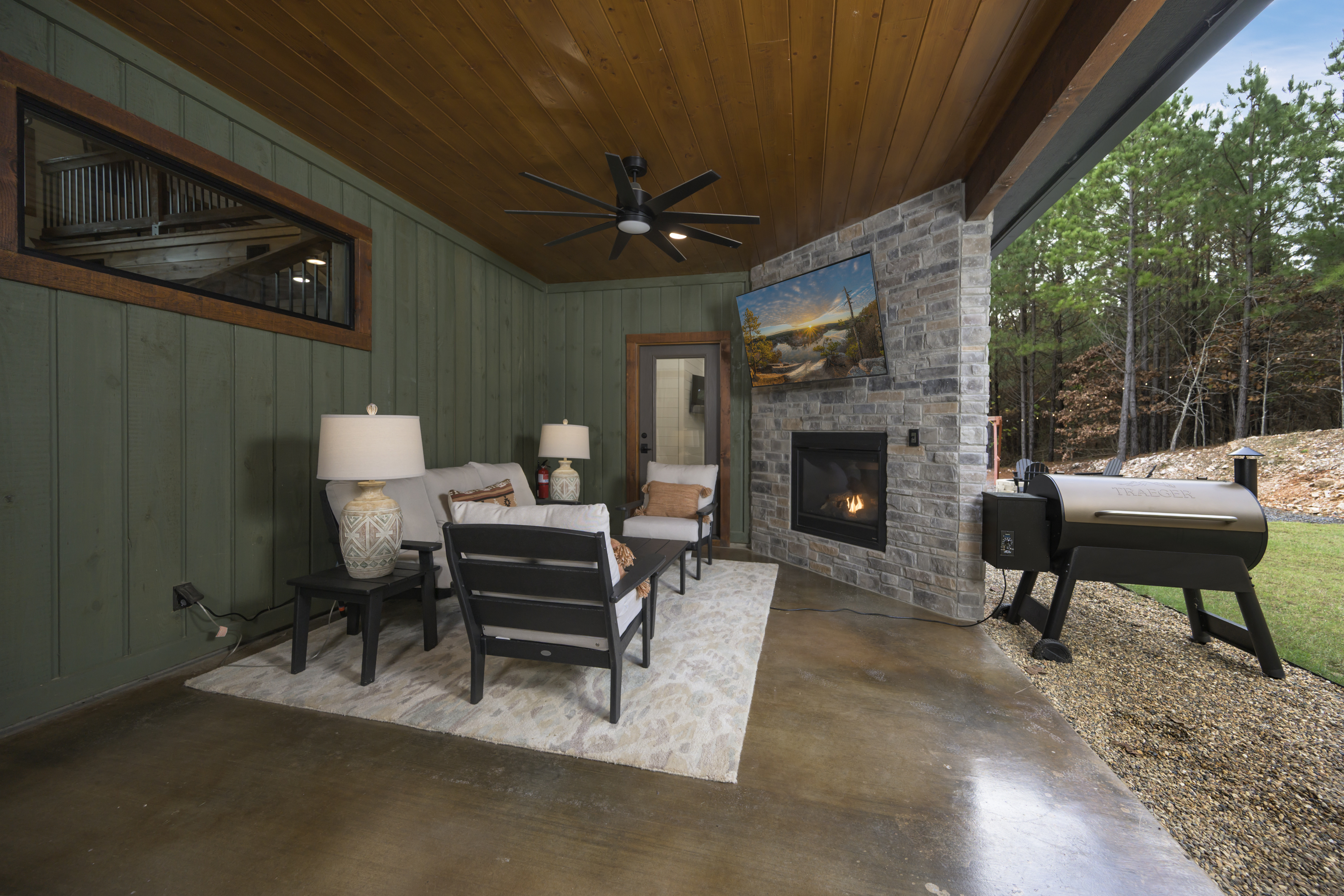 • Pellet grill + outdoor dining space