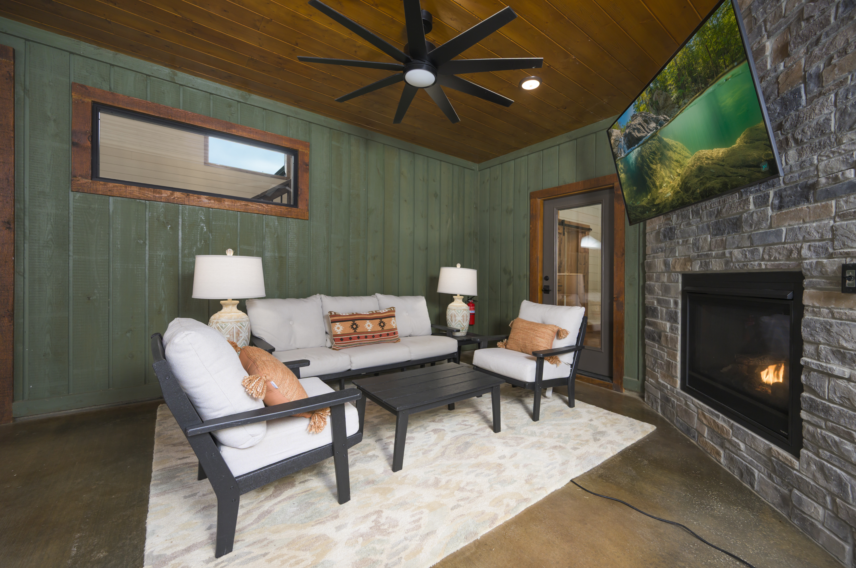• Indoor/outdoor fireplaces operate Oct 1 – Apr 30