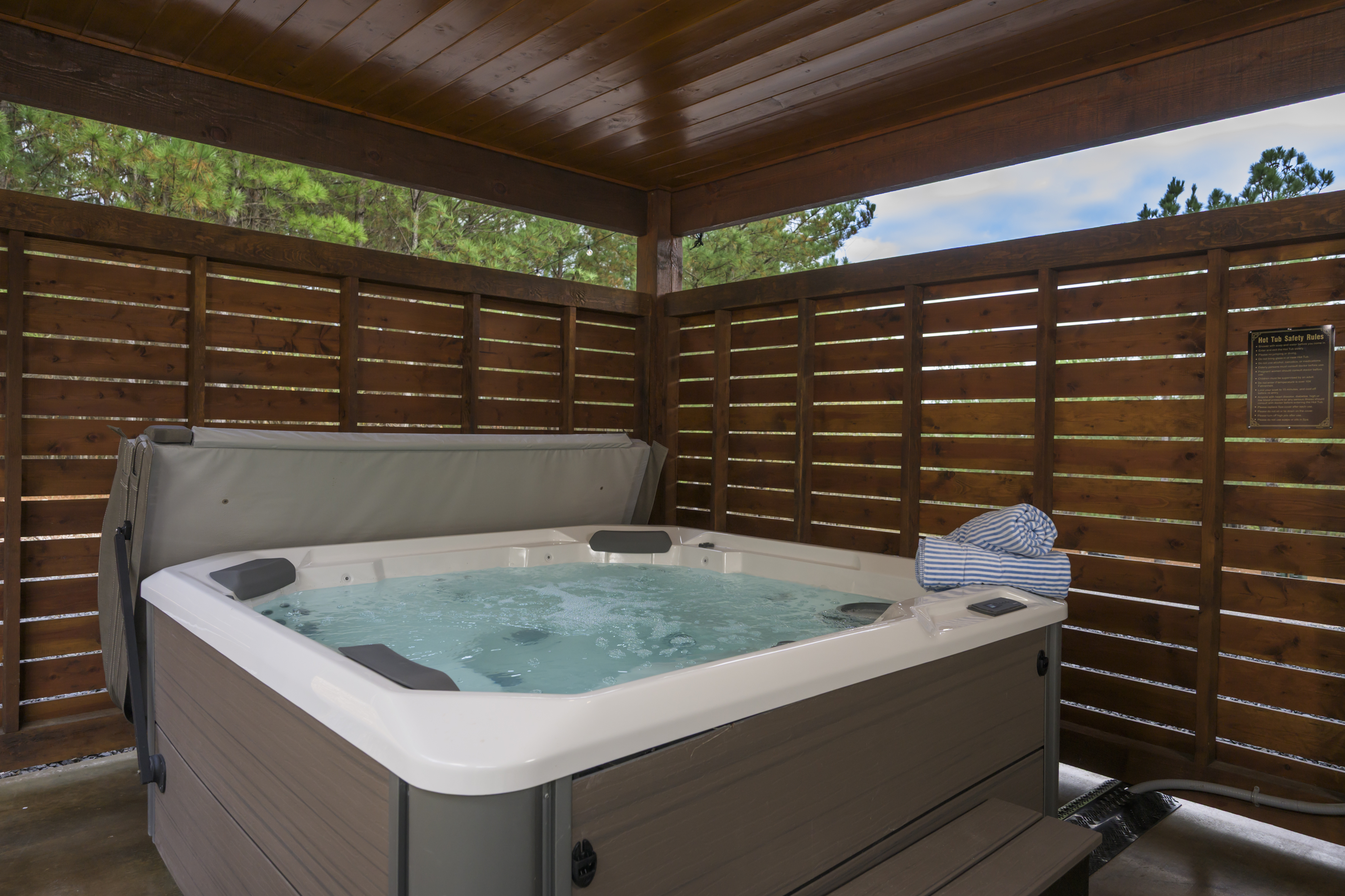 • Hot tub cleaned and refilled before every stay